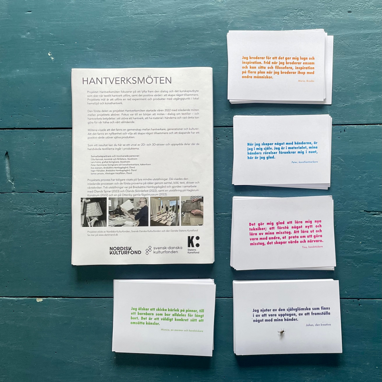 The initial part of the project started spring 2022, via a series of meetings on Öland between the project’s actors. The starting point for the initial meetings was a dialogue about textiles and the importance of craftsmanship in practicing craft. Conversations about the culture and history of textiles, about having materials in your hands, and what craftsmanship does for our mental health and well-being. The meetings quickly showed that a community emerged across actors, generations, and cultures. It became clear in the process that creating something together had a positive value beyond the product itself.